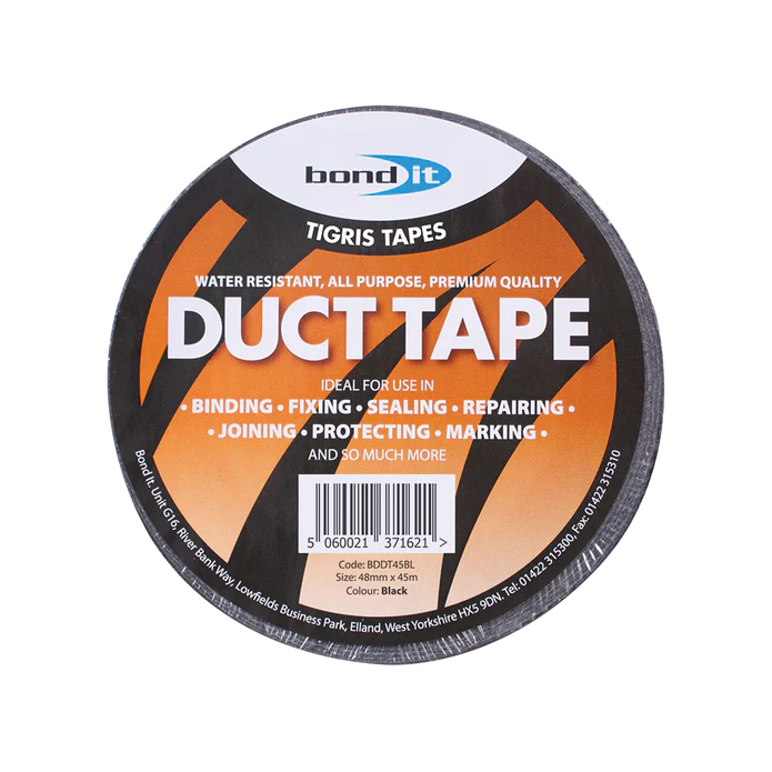The Bond-It Duct Tape – Black 48mm x 45m is a heavy-duty, multi-purpose tape designed for reliable fixing, sealing, and repair work. Featuring a strong adhesive and tough backing, it delivers excellent holding power across a wide range of surfaces and conditions.