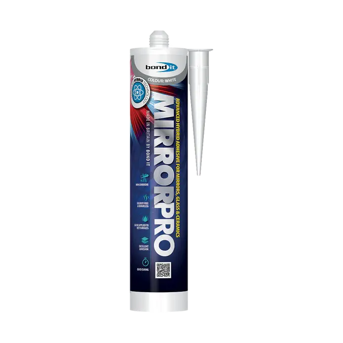 Bond-It Mirror Pro is a professional-grade mirror adhesive specifically formulated for securely bonding mirrors to a wide range of wall surfaces without damaging the mirror backing. Designed for trade and professional installers, Mirror Pro provides a strong, reliable bond while remaining solvent-free and safe for use on sensitive mirror coatings.